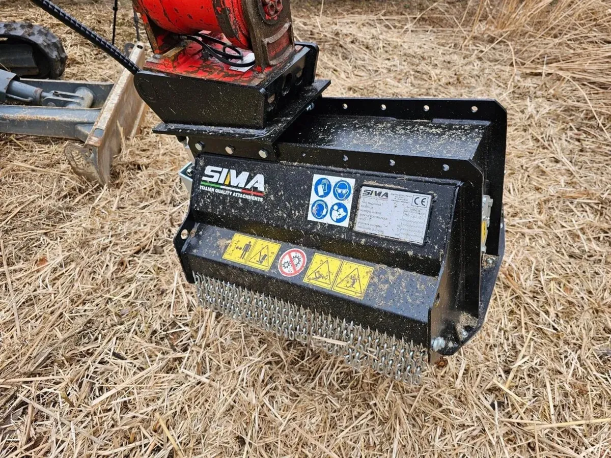 SIMA Excavator TLE Mulchers Prices start from €3,500.00 plus vat (TLE60 Model) and includes custom made hitch and mounting plate to suit your machine. Delivery included. The TLE Mulcher can be fitted on excavators from 1 to 8 ton capacity.(Kubota, Hitachi, Yanmar, Takeuchi, Komatsu, Case, Caterpillar, JCB etc) Ideal for maintenance of green and inaccessible areas, ditches, brambles, clearing of trees and branches up to 60mm. 5 hydraulic motor sizes are available to suit the hydraulic oil flow of your machine. (Not a one size motor fits all). This is to ensure that there is optimal oil flow to track and slew the excavator as normal while the mulcher is in operation. Y shaped flails/knives that provide a consistent and clean cut, require less horsepower to get up to full speed which saves on fuel economy. The Y shaped flails will shred rather than chip, producing a finer result than hammer flails. 3 Mulcher sizes available: TLE 60 - cutting width of 642mm (100kgs) - €3,500.00 plus vat TLE 80 - cutting width of 842mm (130kgs) - €3,700.00 plus vat TLE 100 - cutting width of 1042mm (150kgs) - €3,900.00 plus vat Lightweight, robust and built to last. SIMA only use the very best Italian made components . The TLE Mulchers come fitted as standard with the following equipment: - Interchangeable slides which facilitate sliding on the ground - Excavator attachment set-up which is adjustable horizontally - Pressure Regulation Valve - Hoses for hydraulic connection, and containment chains positioned on both sides to prevent material from being ejected. - Anti impact and anti-cavitation valve (Breaker lines only required) - CE Certification Please give us a call today for more information. OB Plant - Exclusive Irish agents for SIMA Quality Attachments for over 10 years. www.obplant.com