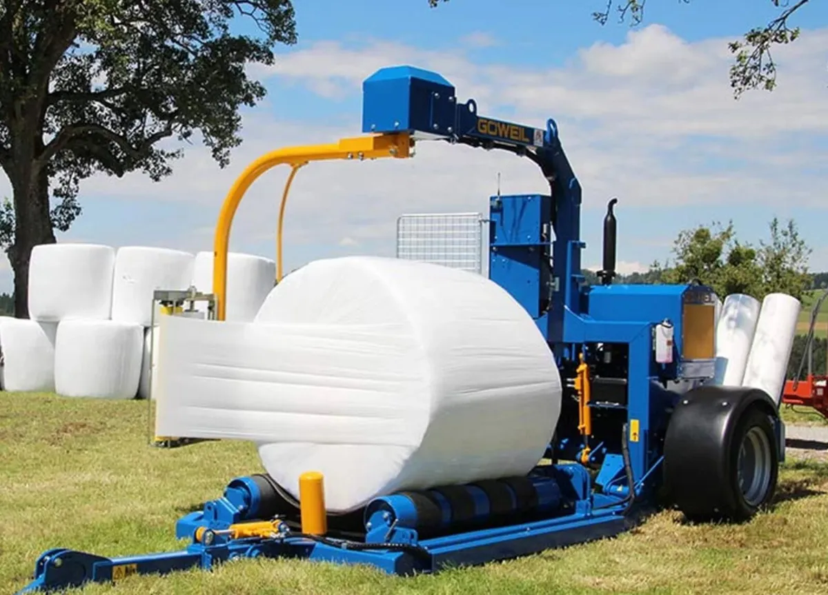 Full range of Goweil bale wrapper available Mounted and trailed options Manual or Automatic Round or square bale options Tractor drive or stand alone engine driven
